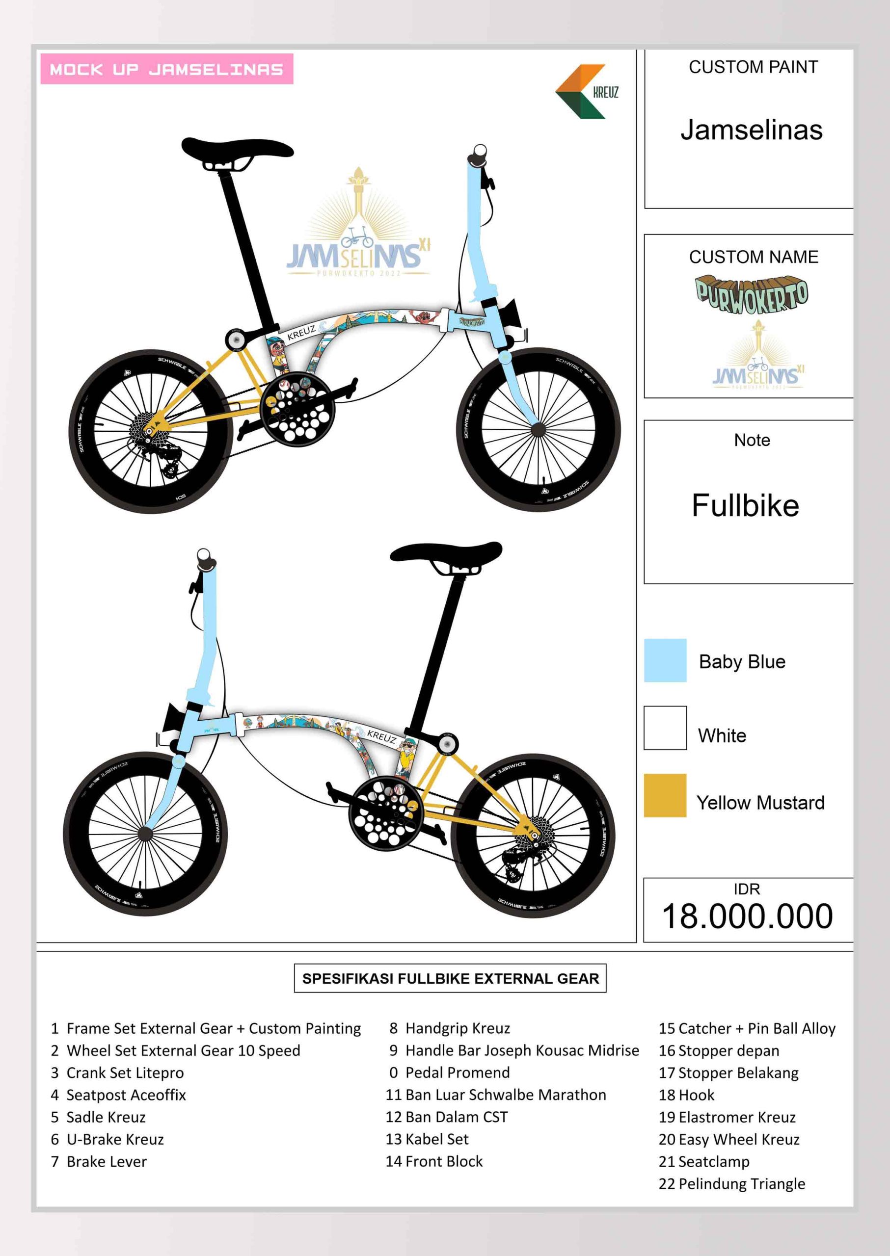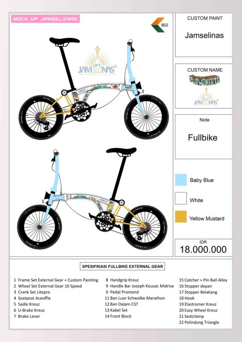 Menghadirkan sepeda lipat Limited Edition Jamselinas XI by Kreuz Bike. Sepeda lipat dengan desain khusus bertema Jamselinas XI. Hanya tersedia 20 pcs, bisa dipilih frame only atau full bike.