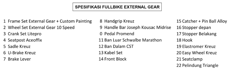 Spesifkasi Full Bike External Gear: